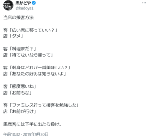 要するに今話題になっているカスタマーハラスメント(カスハラ)対抗策の一番尖った形態(業態)が向島かどやさんなのですが・・・